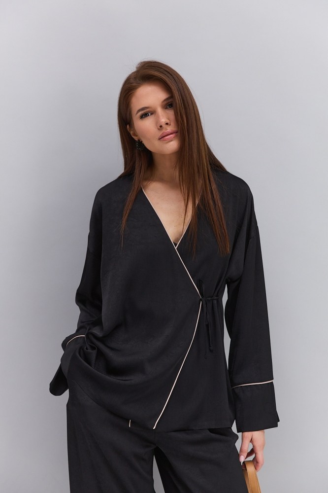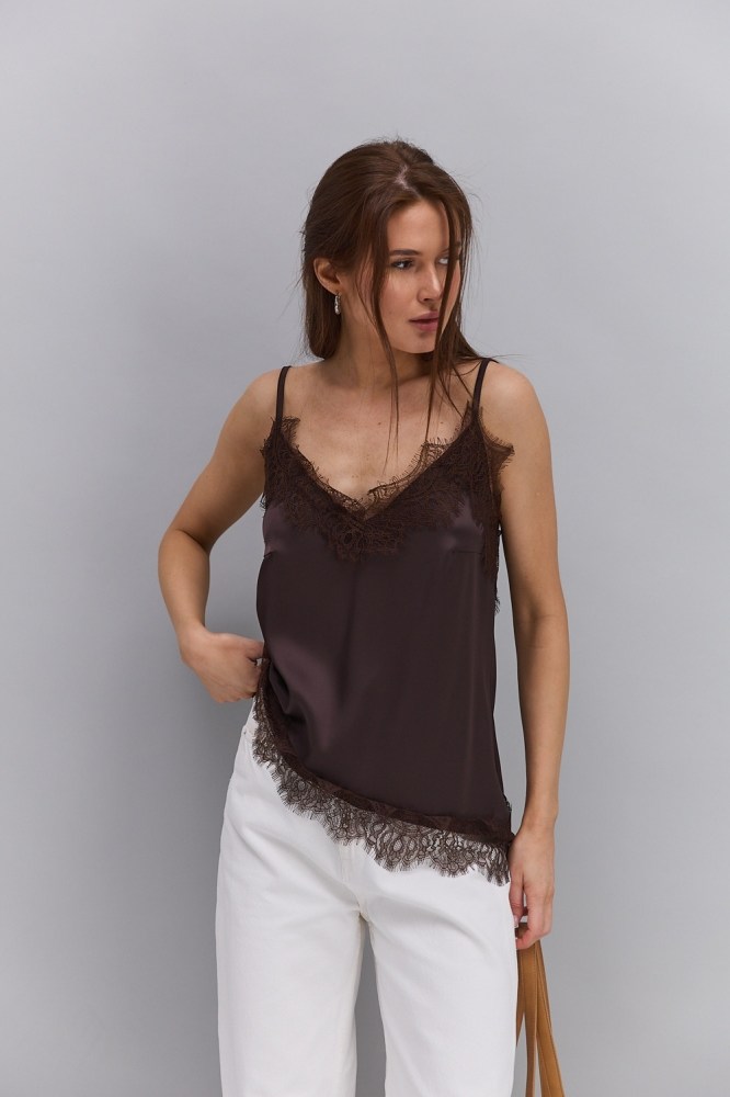 Женская вышиванка темно-шоколадная с молочными цветами гладью