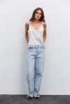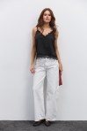Льняной топ на широких бретелях темно-бежевый