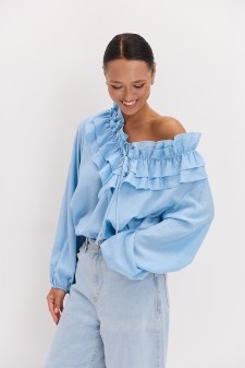 Неймовірно гарна небесного кольору блуза. ❤️ Легка , такі шикарні рукави. 10 із 10.