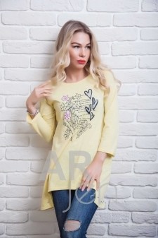 стильной блузке, которую можно купить недорого на сайте "Аржен". В модели длинные рукава полностью выполнены из сеточки с мелким узором и необработанным срезом. Низ полукруглый, по боках есть маленькие разрезы, горловина круглая. На спине вверху блуза застегивается на одну пуговицу, а на груде есть горизонтальные вытачки. Спереди возле горловины расположены необычные цветы, выполненные при помощи машинной вышивки гладью. С такой блузочкой Вы "расцветете" на глазах, заказывайте!