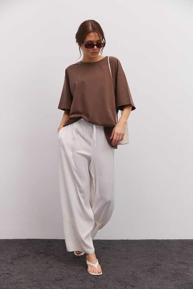 Коричневая футболка женская – базовая вещь, которая будет регулярно выручать модниц. В жаркий летний день носите ее как самостоятельный верх, а прохладными вечерами и в межсезонье используйте как часть многослойных образов в паре с жакетами, кардиганами, сарафанами и другой одеждой. Преимущество коричневой футболки в том, что такая вещь легко сочетается с одеждой разных стилей и расцветок.
