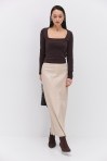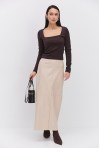 Длинная юбка-карандаш из костюмки темно-бежевая