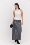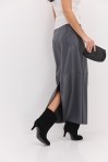 Длинная юбка из теплого трикотажа серая с разрезом сзади