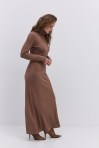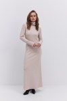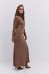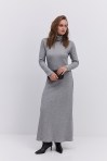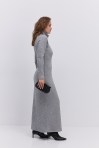 Длинное вязаное платье графитовое с вырезом на талии