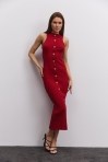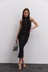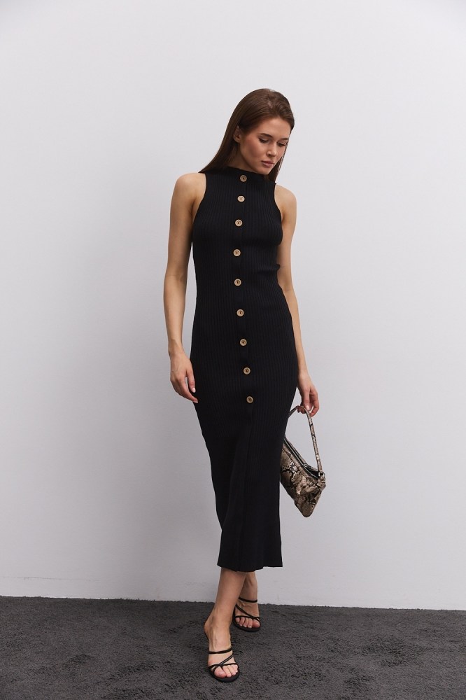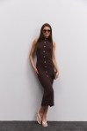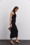 Вязаное платье-миди темно-серое с высоким разрезом сбоку