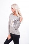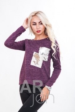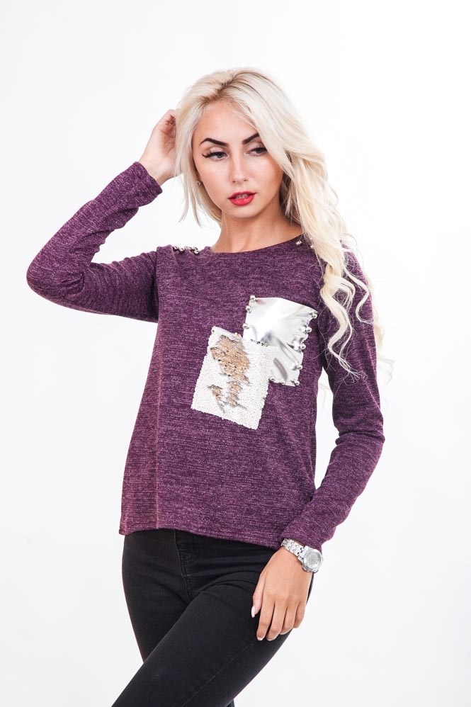 Эта молодежная женская кофта подойдет на каждый день и для особого случая. Модель с длинными рукавами, спинка плавно удлиненная, горловина круглая. Передняя полка на плечах украшена прикрепленными бусинками, слева на груди пришит накладной карман из кожзама с бусинами по краям, поверх которого чуть ниже пришит карман из двухсторонних пайеток. Еще одна особенность этой кофточки - она выполнена из трикотажа с люрексом (с блестящей нитью). Спешите купить модную одежду по ценам от производителя в нашем интернет-магазине!