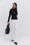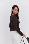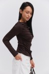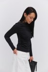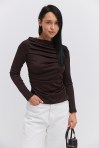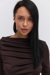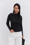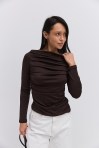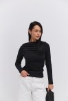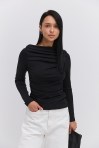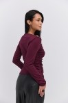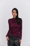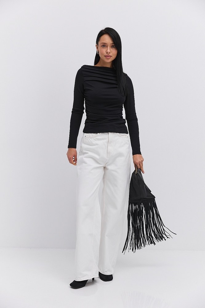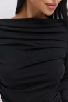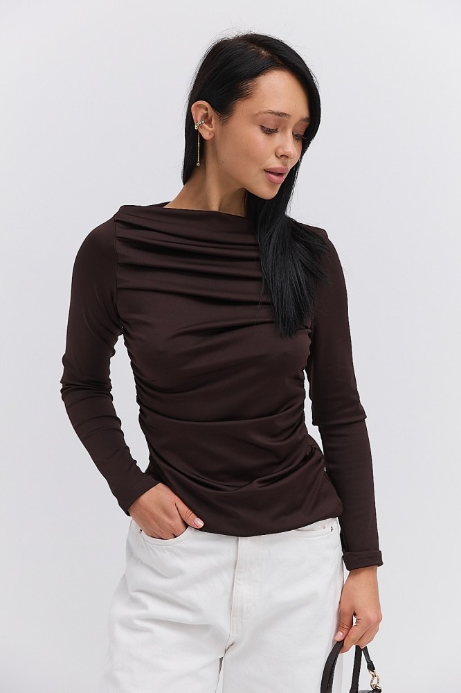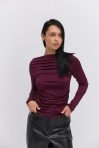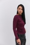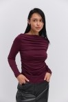 Стильний жіночий лонгслів з драпіруванням додасть особливого шарму твоїм повсякденним та святковим вбранням. Ця модель від Arjen з вирізом горловини човником пошита з гладкої еластичної тканини. Рукави у виробі довгі, краї низу прямі. В бічних швах вшита вузька гумка, що збирає лонгслів у драпірування, а передня частина вгорі у проймах доповнена горизонтальними складками. Доповнюй покупку