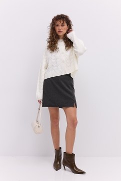 Вязаная мини-юбка темно-бежевая с косичками вверху
