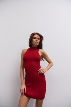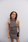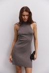 Вязаное платье-миди темно-серое с высоким разрезом сбоку