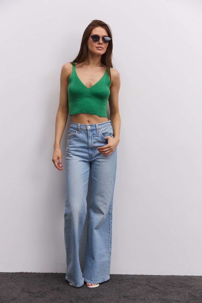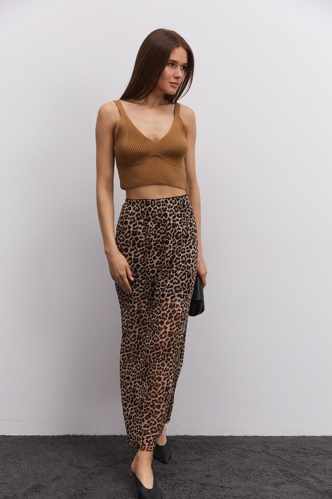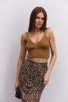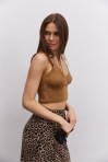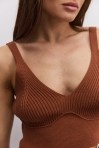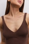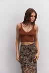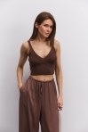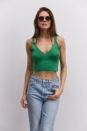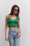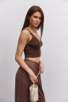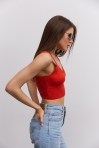 Вязаный кроп-топ без рукавов розово-коралловый
