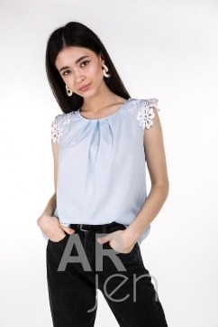 Красивые женские блузки можно носить не только по праздникам или на работу, доказано этой новинкой от "Аржен"! Она подойдет и для романтичного образа на свидание с любимым, и для небольшой пляжной вечеринки, и для повседневной прогулки. В модели прямой низ, круглая горловина сзади застегивается на одну пуговицу, а спереди по центру украшена несколькими складками. Проймы без рукавов обработаны узкой окантовкой, а на плечах декорированы пришитым кружевом "макраме" с цветочными мотивами. Выбирай модные