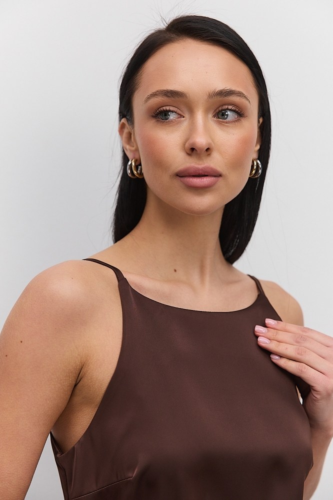 ✓ Коло – дівчатам з такою фігурою необхідно відвернути увагу від живота, візуально подовжити силует і підкреслити ноги. Рекомендуємо сукні-трапеції, пряме плаття або сукню-сорочку, а також підійдуть моделі із завищеною талією та на запах;