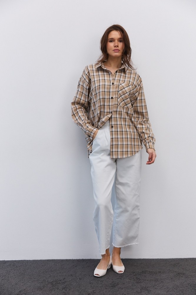 Когда модницам хочется выглядеть стильно без лишних усилий, на помощь всегда придет рубашка в клетку. Особенность этой вещи в том, что, несмотря на свой неформальный вид, она легко вписывается не только в повседневный, но и в офисный стиль, разбавляя однотонные наряды яркими акцентами. А еще женская клетчатая рубашка подходит обладательницам разных типов фигуры, главное – подобрать правильный фасон изделия. Так, удлиненные модели больше подходят для высоких женщин, приталенные помогут подчеркнуть красивую талию и грудь, прямые или расклешенные рубахи скрывают «проблемные места», а укороченная длина сделает основной акцент на верхней части силуэта. Также немаловажную роль играет и сам рисунок. Например, мелкая клетка хорошо смотрится на худощавых девушках, а крупный принт поможет сделать фигуру визуально стройнее.