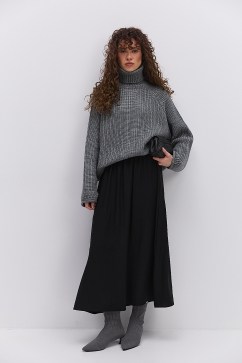 Длинная юбка из теплого трикотажа серая с разрезом сзади