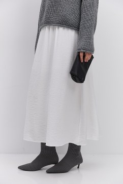 Длинная юбка из теплого трикотажа серая с разрезом сзади