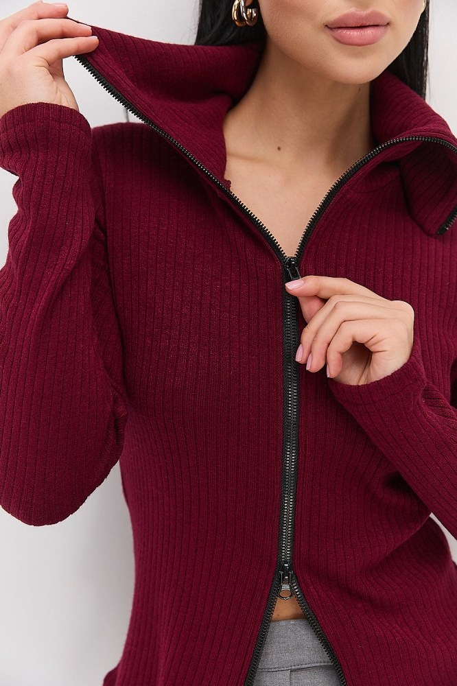 Женский лонгслив в рубчик шоколадный с квадратной горловиной