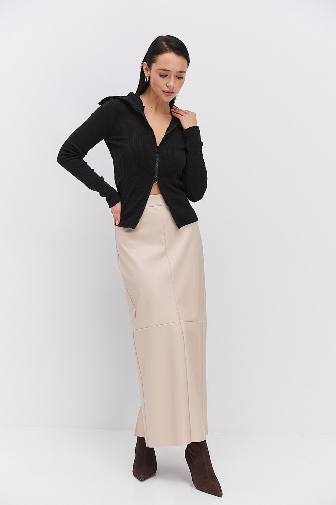 Женский лонгслив в рубчик черный с квадратной горловиной
