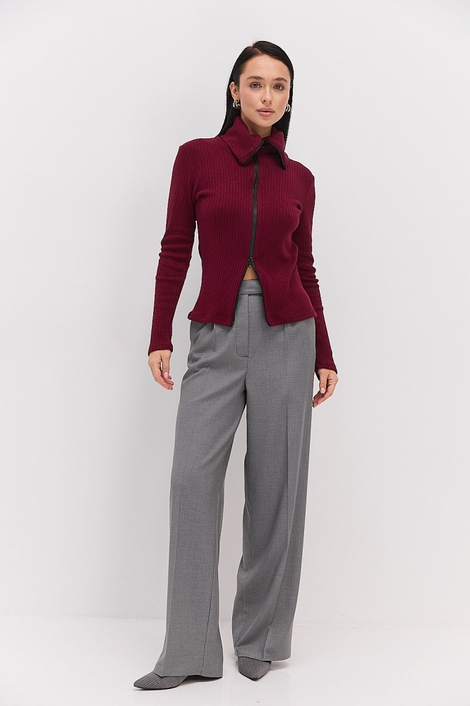 Женский лонгслив в рубчик графитовый с квадратной горловиной