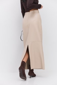 Довга спідниця з екошкіри у бежевому відтінку з легкістю урізноманітнить твої базові комбінації одягу! Використовуй її і для монохромних образів, і для контрастних, змінюючи акценти у кожному вбранні.