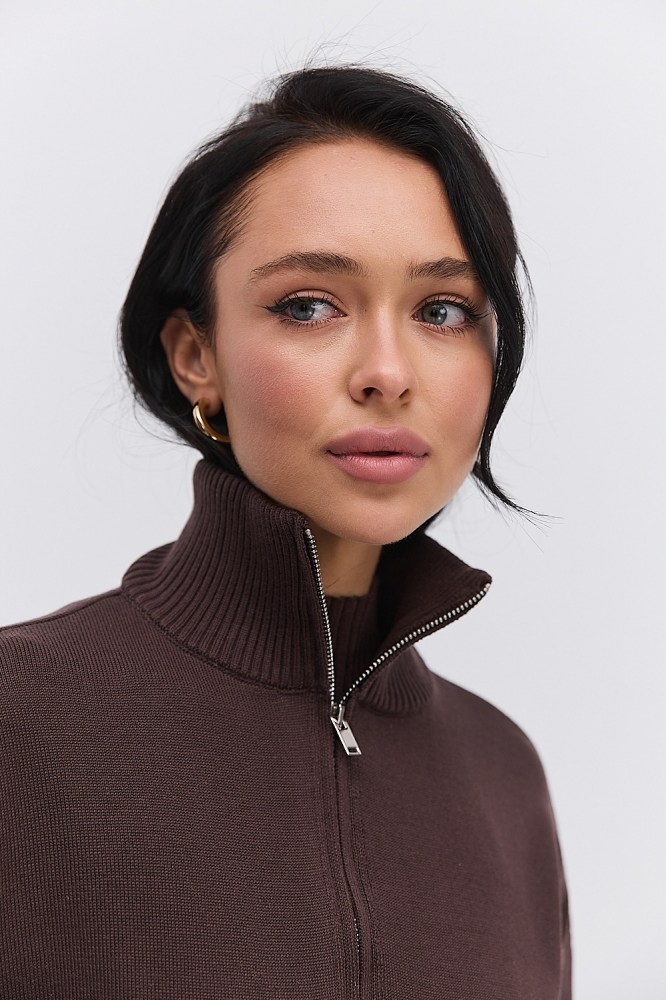 ✓ Довжина виробу, фасон та силует – вони повинні відповідати вашому типу фігури, щоб гарна кофта з довгим рукавом підкреслювала ваші переваги, не акцентуючи увагу там, де ви цього не бажаєте. Йдеться не лише про приталений або прямий силует виробу, а й про інші деталі. Наприклад, модні цього сезону об'ємні рукави будуть доречними для власниць вузьких плечей і широких стегон (тип фігури «груша»), а якщо плечі широкі, краще зупинити вибір на моделях з рукавами-регланами. Від довжини виробу також залежить сприйняття жіночої фігури: якщо краї низу закінчуються на найширшій частині стегон, вони здаватимуться пишнішими (така довжина підходить для типу фігури «морква», «прямокутник»), а молодіжні недорогі кроп-топи з довгими рукавами візуально витягують зріст і підходять для невисоких дівчат. Довжина нижче лінії стегон дозволяє приховати пишний низ силуету. Тому, якщо усі елементи обраної вами моделі кофти з довгим рукавом разом створюють ефект «пісочного годинника», додаючи або приховуючи об’єми саме там, де це необхідно вашому типу фігури, це ідеальна покупка;