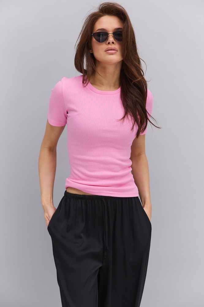 Рожева футболка для жінки – універсальна річ, яка виручить модниць у будь-якій ситуації. Базові однотонні моделі можна носити хоч увесь рік: влітку – як самостійний верх, взимку – як нижній шар під светр, в’язаний кардиган чи теплий світшот. У міжсезоння стильно виглядають багатошарові комбінації жіночої рожевої футболки з широкою розстібнутою сорочкою. Моделі з принтами та іншим модним декором стануть головним акцентом ваших повсякденних образів у міському стилі. Їх можна поєднувати практично з будь-яким низом: від молодіжних шортиків та джинсів до класичних штанів та спідниць.