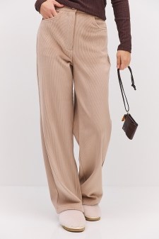 жіночі штани від виробника Arjen, декоровані спереду стрілками зі строчкою. Ця модель виконана зі щільного еластичного трикотажу і вгорі в лівому бічному шві застібається на потаємну блискавку. Краї низу прямі, втачний пояс йде без гумки, а ззаду вгорі розташовані вертикальні виточки. Доповнюй покупку