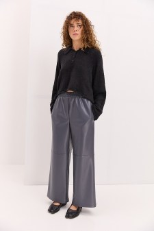 Коричневі штани з екошкіри – це і трендовий акцент, і практична основа для різноманітних твоїх аутфітів. З ними можна сміливо комбінувати одяг різних стилів, від елегантних блуз до затишних светрів.