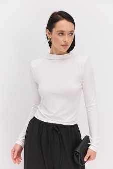 Додати сяйва твоїм святковим та повсякденним аутфітам допоможе лонгслів білого кольору. А завдяки його квадратній горловині ти легко зможеш одягнути улюблені прикраси на шию.