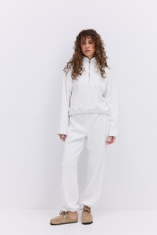 Не просто затишний, а й елегантний look ти отримаєш, обравши в`язаний костюм зі штанами у бежевому кольорі. З ним виглядати стильно, не жертвуючи комфортом, – легко!