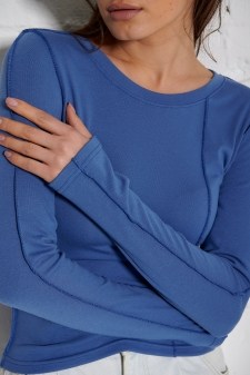 молодежный кроп-топ с длинными рукавами. Модель подчеркивает красоту женской фигуры благодаря текстуре ткани в мелкий вертикальный рубчик и декоративным швам, расположенным спереди под грудью. Сам топ идет с прямым низом, а круглая горловина обшита узкой окантовкой. Покупайте