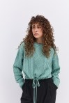молодежным джемпером из машинной вязки от "Аржен" ты сможешь создавать разнообразные образы, меняя силуэт и акценты. Укороченная модель полностью украшена узорами в крупные косы и по центру изделия и рукавов дополнена объемным узором в ромбы. Линия плеча в кофточке удлиненная, длинные рукава заканчиваются вязаными манжетами с резинкой по краям. Прямой низ изделия дополнен кулиской с вязаным шнурком в тон, который завязывается спереди по центру. Круглая горловина с бейкой в тон по краям также обшита тоненькой резинкой. В интернет-магазине Arjen ты можешь