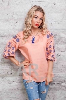 Это стильное платье с вышивкой в украинском стиле подойдет и на каждый день, и для праздника. В модели рукава 3/4 идут с небольшим воланом от середины, круглая горловина дополнена тонкой окантовкой, на талии есть втачной пояс, а от талии платьице свободное, с легкими складочками вверху. На спине платьице застегивается на длинную потайную молнию, а верх изделия прилегает по фигуре благодаря вертикальным выточками спереди и сзади. Цветочный узор на передней полке выполнен при помощи машинной вышивки гладью. Спешите заказать современное платье-вышиванку по лучшей цене от производителя прямой сейчас!