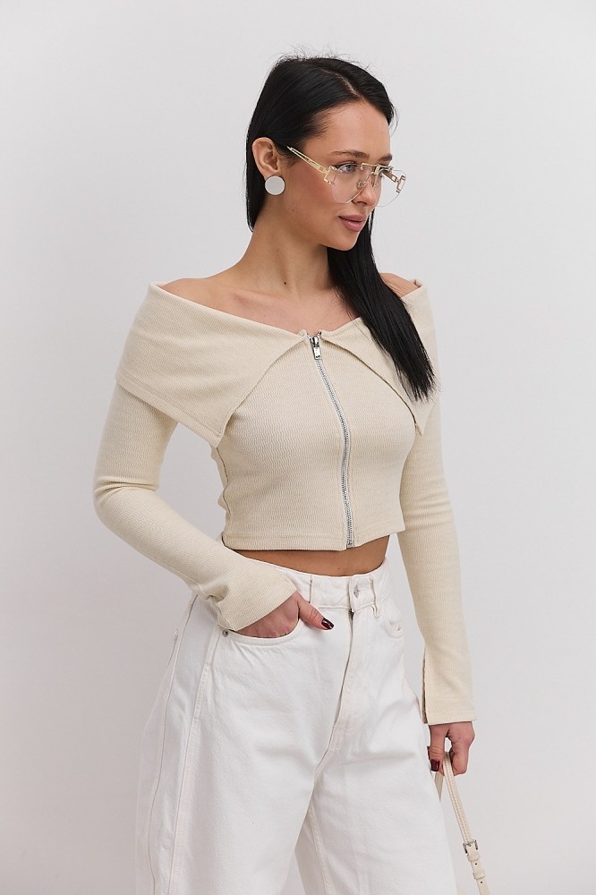 Ажурная вязаная кофта «паутинка» молочного цвета