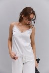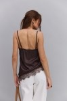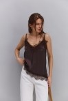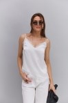 Женская вязаная майка розово-коралловая с полупрозрачным верхом