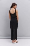 Длинная юбка в деловом стиле графитовая со шлицей спереди