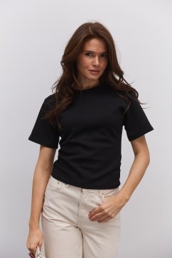 Женская вязаная футболка с открытыми плечами светло-персиковая