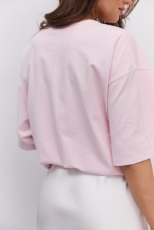 Женская вязаная футболка коралловая с бусинками