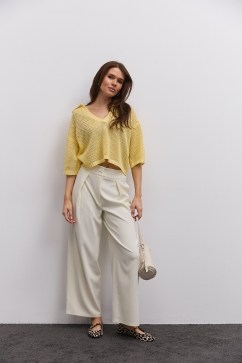 Женская вязаная футболка с открытыми плечами светло-персиковая