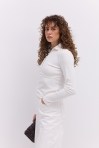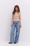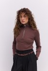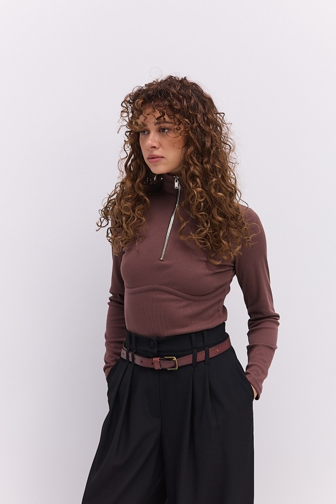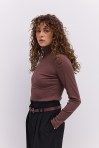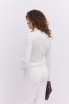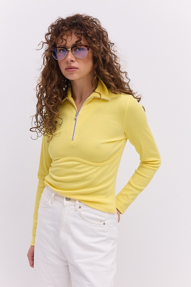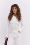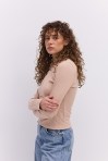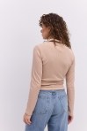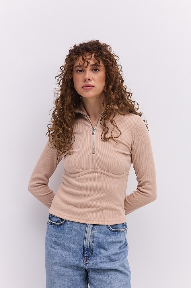 Женский вязаный свитер бежевый с воротником на пуговицах