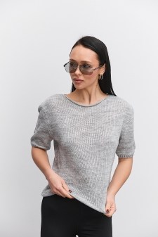женской футболки oversize твои наряды заиграют по-новому этим летом. Укороченная модель полностью выполнена из машинной вязки с геометрическими и ажурными узорами. Края прямого низа и коротких рукавов дополнены узкими манжетами из двойной вязки в мелкий рубчик, а края круглой горловины выполнены в форме короткого воротника-стойки с тонкой резинкой. Ты влюбишься в легкость и комфорт этой футболки, оформляй заказы на