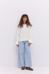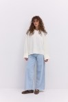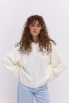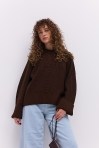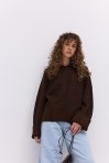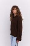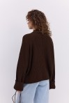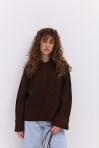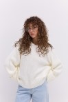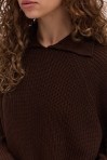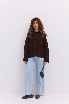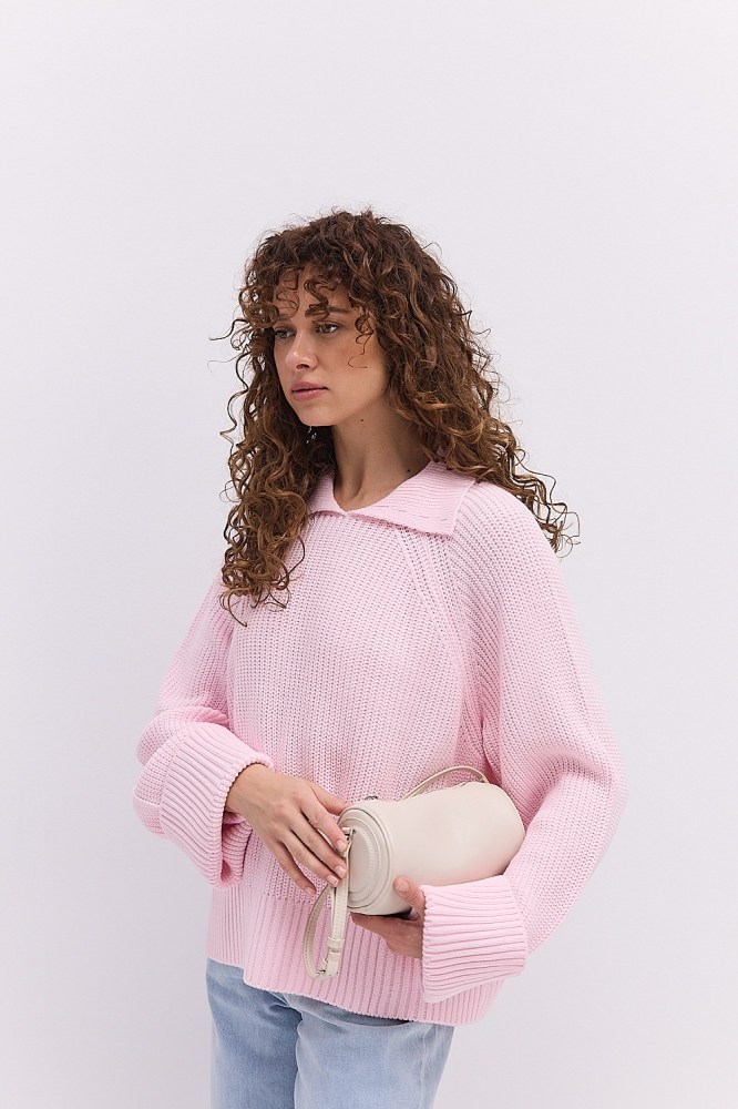 Женский вязаный свитер бежевый с воротником на пуговицах