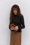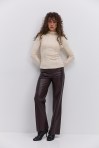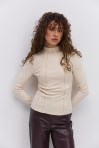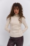 Женский вязаный свитер бежевый с воротником на пуговицах
