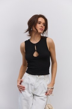 Женская вязаная майка розово-коралловая с полупрозрачным верхом