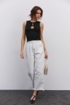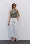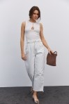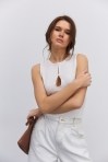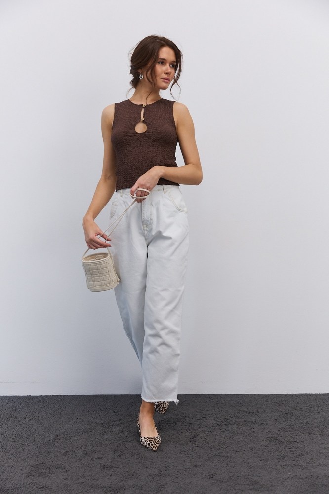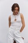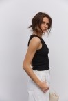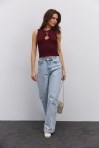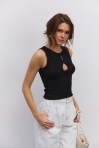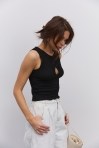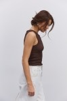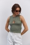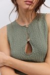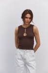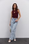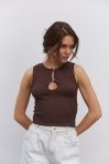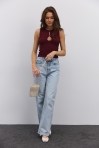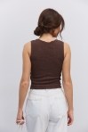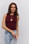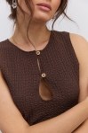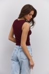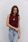 Женская вязаная майка розово-коралловая с полупрозрачным верхом