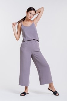 жіночий літній костюм з сорочкою та шортами з легкої тканини з жатим ефектом. В комплекті короткі шорти йдуть з прямим низом та з широкою гумкою, вшитою в поясі. Спереду вгорі розташовані прорізні кишені з косою лінією входу. В oversize сорочці лінія плеча подовжена, рукави короткі, краї низу напівкруглі. Кругла горловина доповнена відкладним коміром на стійці. Ззаду вгорі розташована кокетка з двома складками під нею, а спереду сорочка застібається на ґудзики. В інтернет-магазині "Аржен" ти можеш