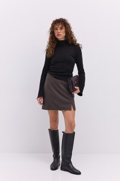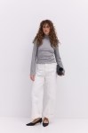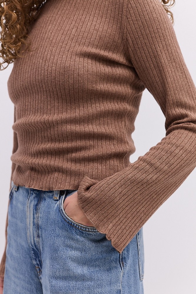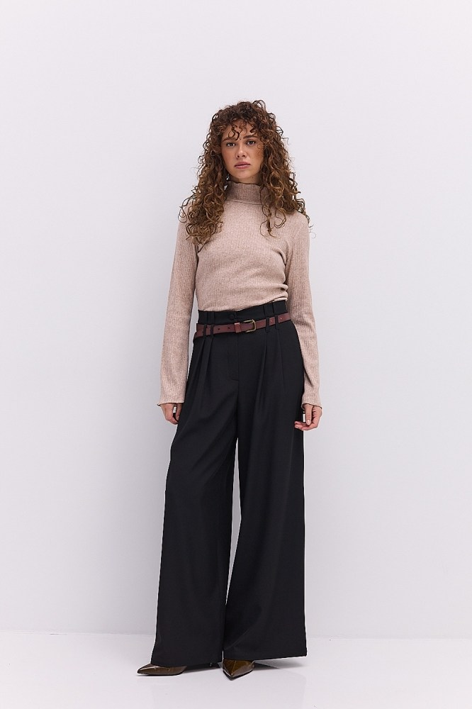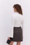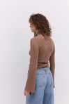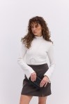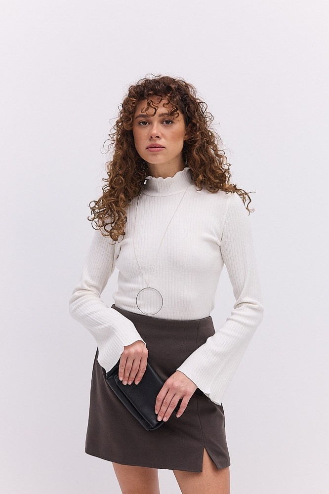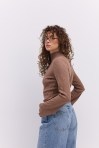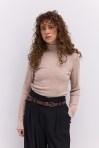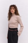 Женский вязаный свитер бежевый с воротником на пуговицах