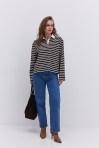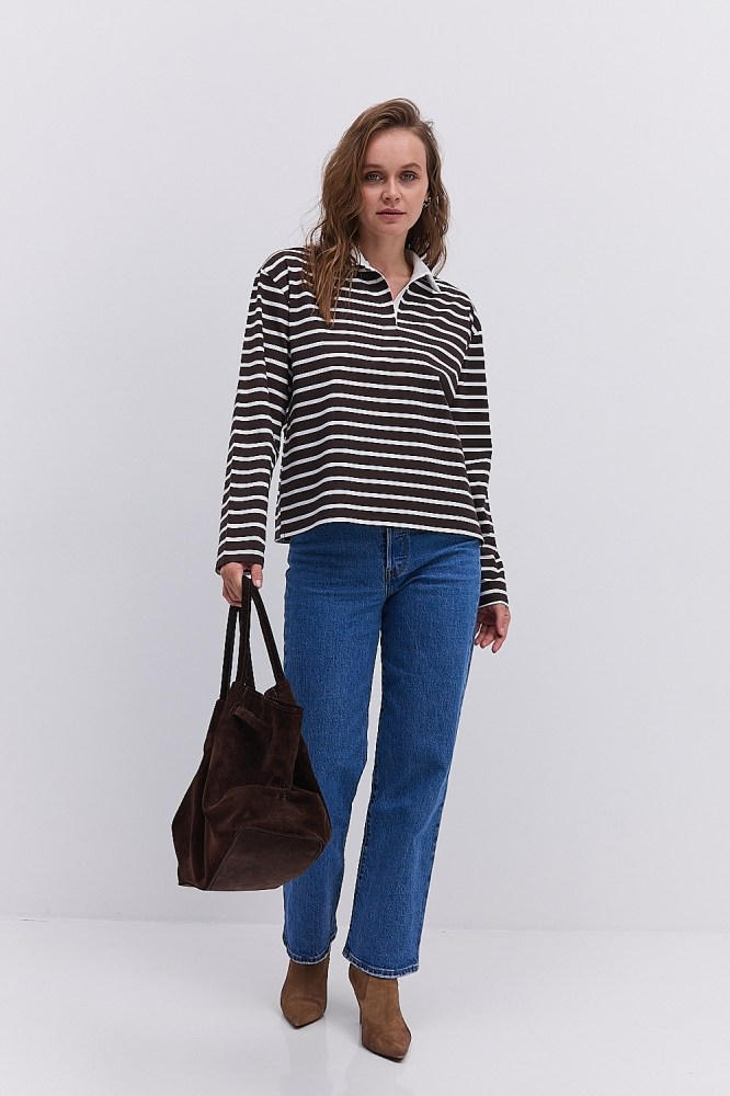 Женский вязаный свитер бежевый с воротником на пуговицах