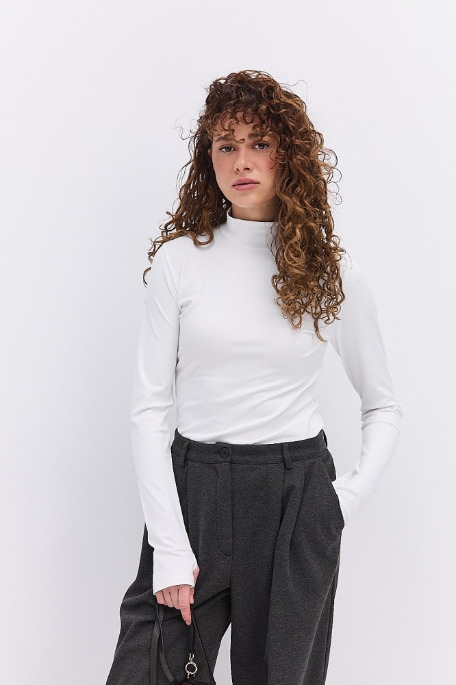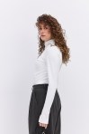 Женский вязаный свитер бежевый с воротником на пуговицах