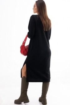 Зимнее платье-миди из трикотажа черное с разрезом на ноге