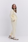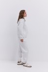 Женский вязаный костюм с юбкой и кроп-топом с длинными рукавами светло-серый
